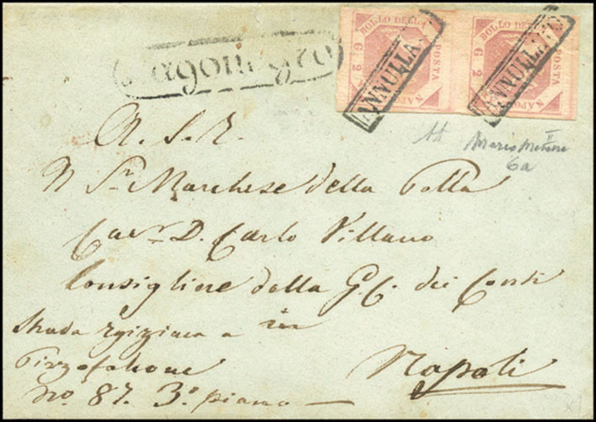 ✉ 1858 Napoli 2gr. rosa lillaceo (N°6a)