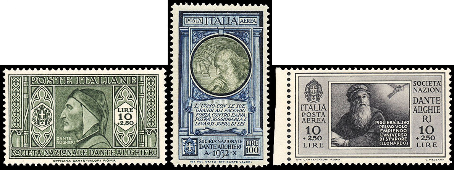 • 1932 Italia Regno: Dante Alighieri (N°303/14+A) s. cpl.